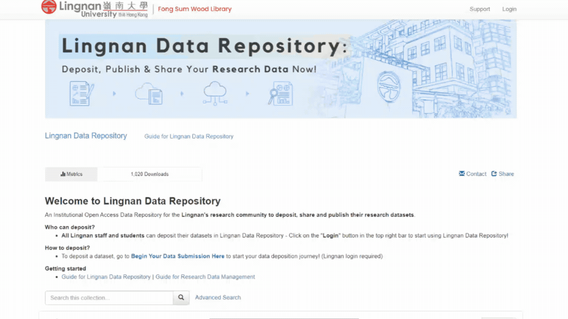 All Lingnan staff and students with a Lingnan Data Repository account can deposit their datasets in Lingnan Data Repository.